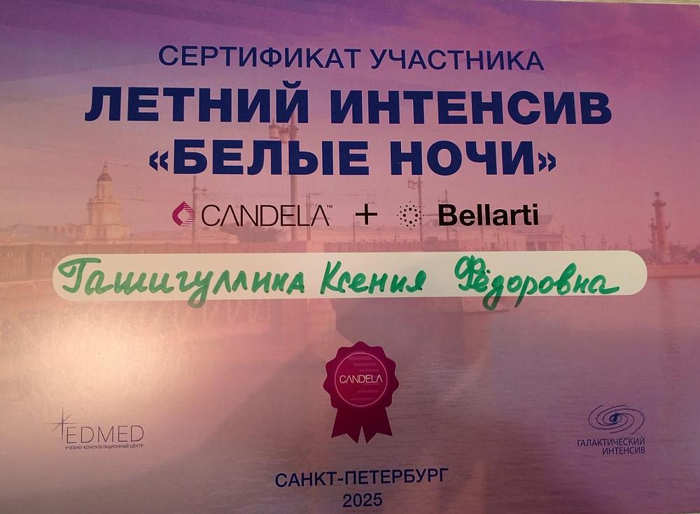 Военно-Медицинская академия, ординатура по специальности дерматовенеролог.