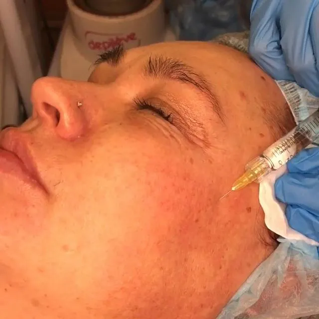 - Косметолог вскрывает стерильную упаковку со шприцом, наполненным биорепарантом, вводит раствор по папульной технике. Игла для введения препарата очень тонкая, после нее остаются едва заметные следы.
