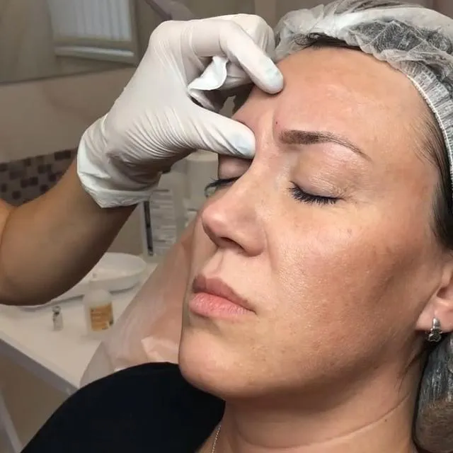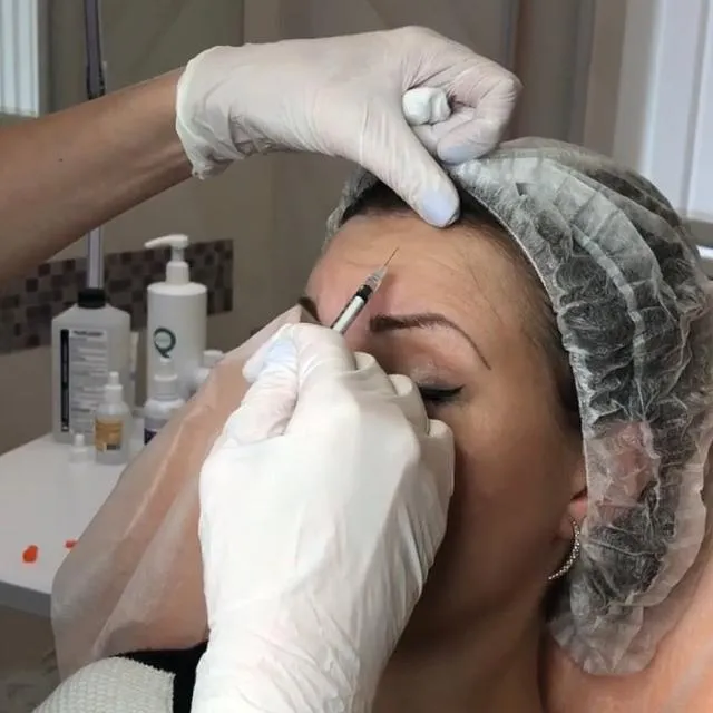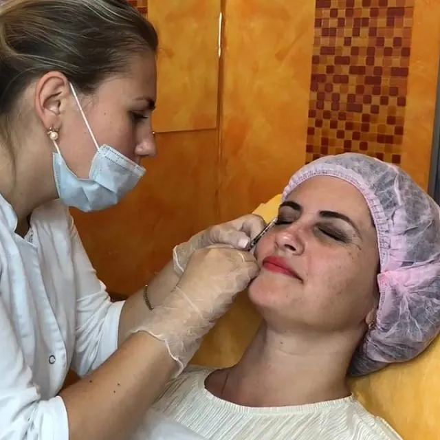 В намеченных зонах тонкой иглой вводят препарат под кожу. Для уменьшения отека тканей на 10-15 минут прикладывают к лицу лед.