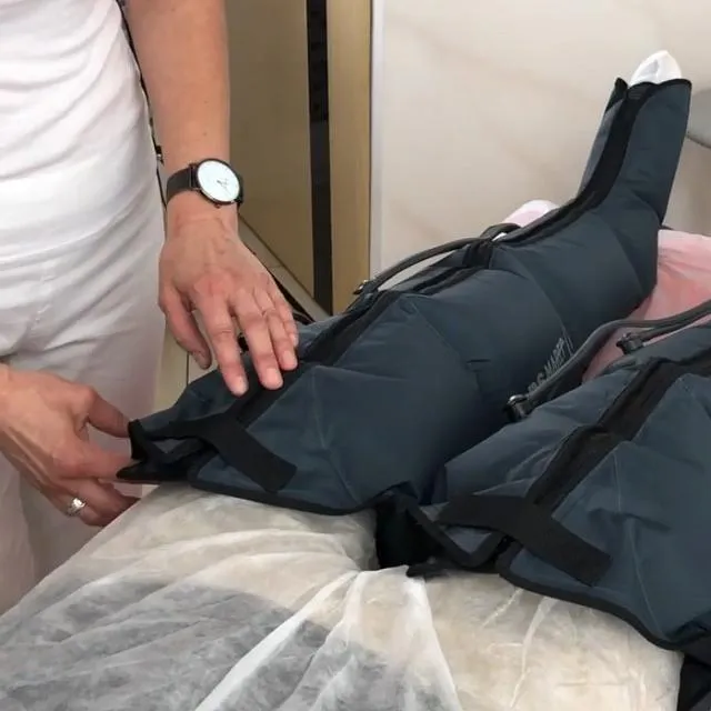 Эта аппаратная методика – альтернатива ручному лимфодренажному массажу ног. Прессотерапия проводится на пневмомассажере: аппарат нагнетает воздух в камеры пневмокостюма, надетого на клиента. В центрах OLA прессотерапия используется для лимфодренажа ног при целлюлите, венозном застое, отечности, мышечных болях, утомляемости.