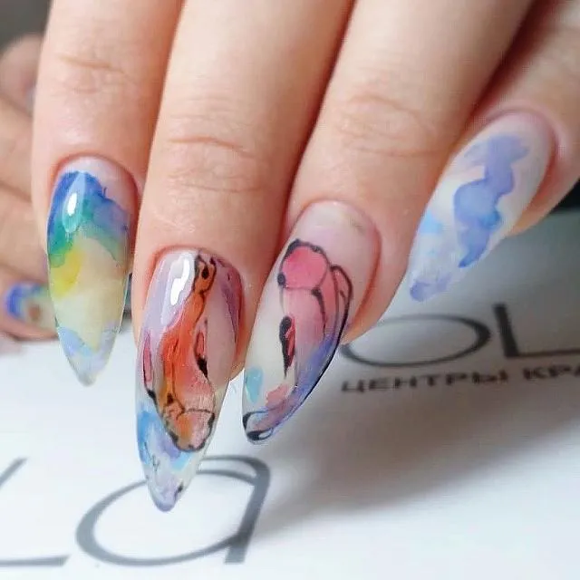Аквариумное наращивание ногтей – необычный вид ногтевого дизайна, который выглядит потрясающе благодаря эффекту аквариума: рисунок или другие украшения смотрятся как будто под стеклом. Мастер создает настоящее художественное произведение на ногтях, сверху наносит прозрачный слой геля, который и играет роль стекла.