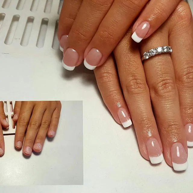 - French, или французский маникюр – универсальный вид наращивания, подходит под любой макияж и стиль одежды.