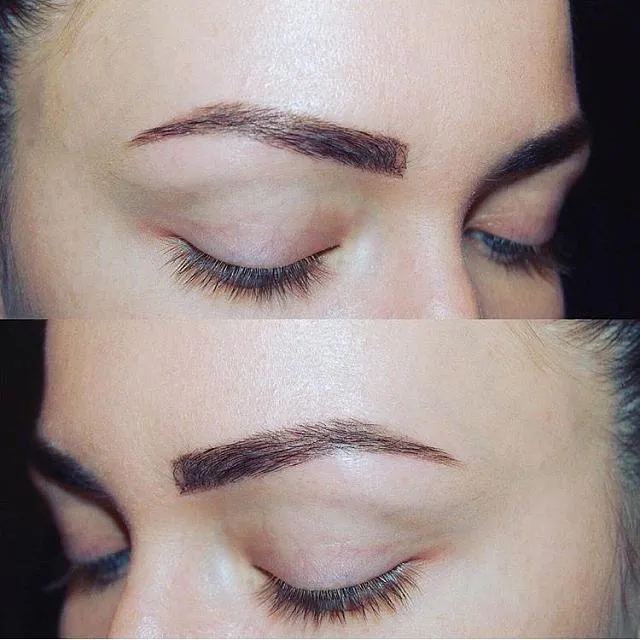 - Брови приобретают симметрию и одинаковый оттенок – этого трудно добиться, если самостоятельно подкрашивать брови декоративной косметикой.