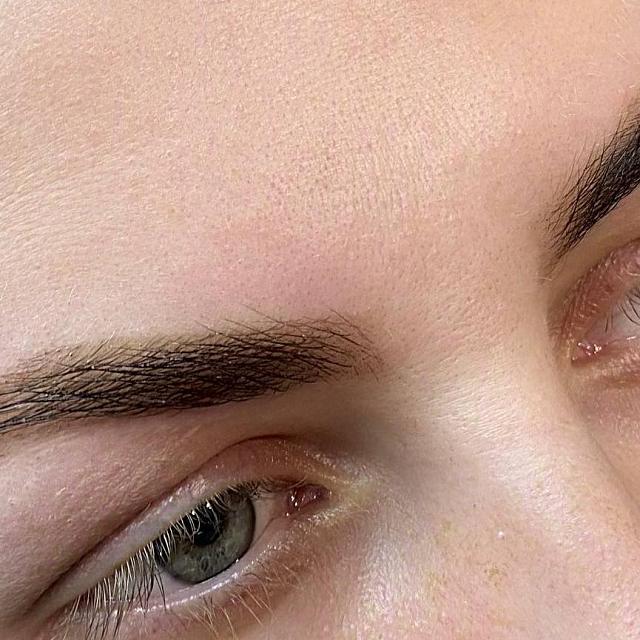 - Брови окрашены равномерно, имеют четкую форму.