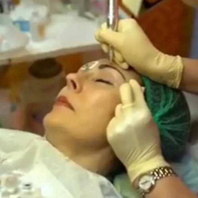 используется аппарат для перманентного макияжа со стерильной иглой. Сначала прорисовываются контуры, затем цветом заполняется оставшаяся поверхность.