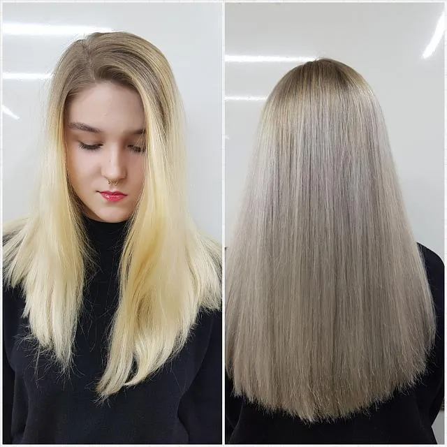Для тонировки осветлённых локонов используют краски светлых оттенков — на 1–2 тона светлее природного цвета. Это помогает избавиться от желтизны и придать волосам холодный или нейтральный оттенок.