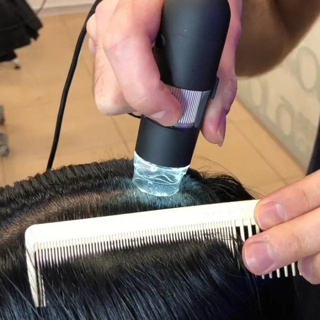 Во время диагностики используется различное увеличение: при определении плотности волос достаточно увеличить изображение в 60 раз, при измерении толщины волос используется увеличение в 200 раз. Чтобы исследовать структуру волоса, требуется увеличение в 1 тыс. раз.