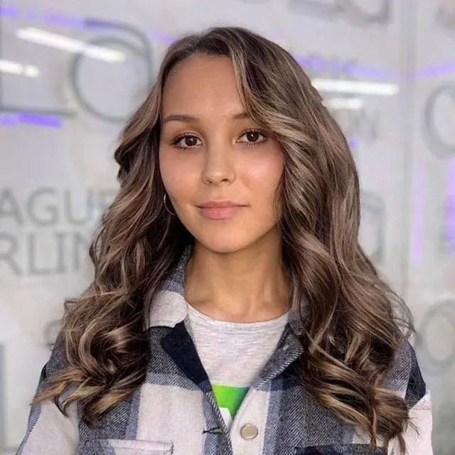 Меня здесь так круто накрутили на бигуди, а потом докручивали на плойку. Прическа получилась просто бомба. Я на празднике была в центре внимания с такими локонами. Очень красиво смотрятся.