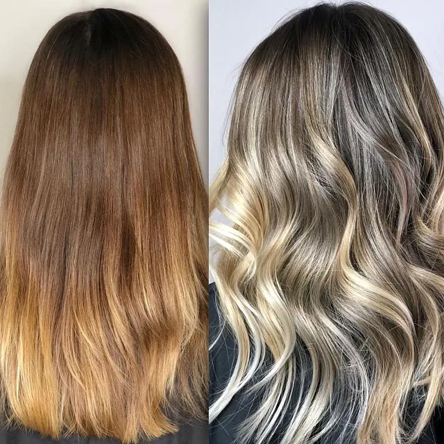 - Окончательная укладка. Стилист расчесывает выпрямленные волосы, руками придает естественный вид накрученным локонам. После этого прическа фиксируется лаком.